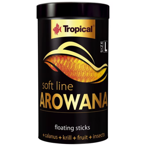 Soft Line Arowana L est un aliment complet haut de gamme sous forme de sticks tendres flottants, spécialement conçu pour les Arowanas et autres grands carnivores d’eau douce. Grâce à une texture souple et appétente, ce granulé innovant favorise une prise alimentaire rapide, tout en étant hautement digestible. Sa composition riche en poisson, krill, insectes, astaxanthine et spiruline contribue à une croissance saine, une coloration intense et un système immunitaire renforcé.